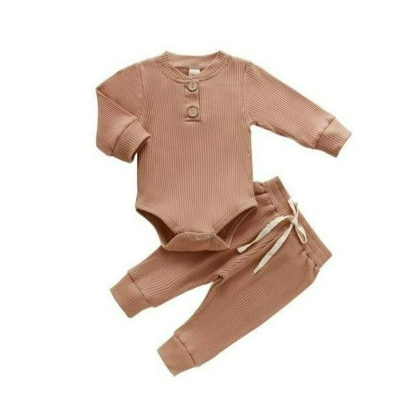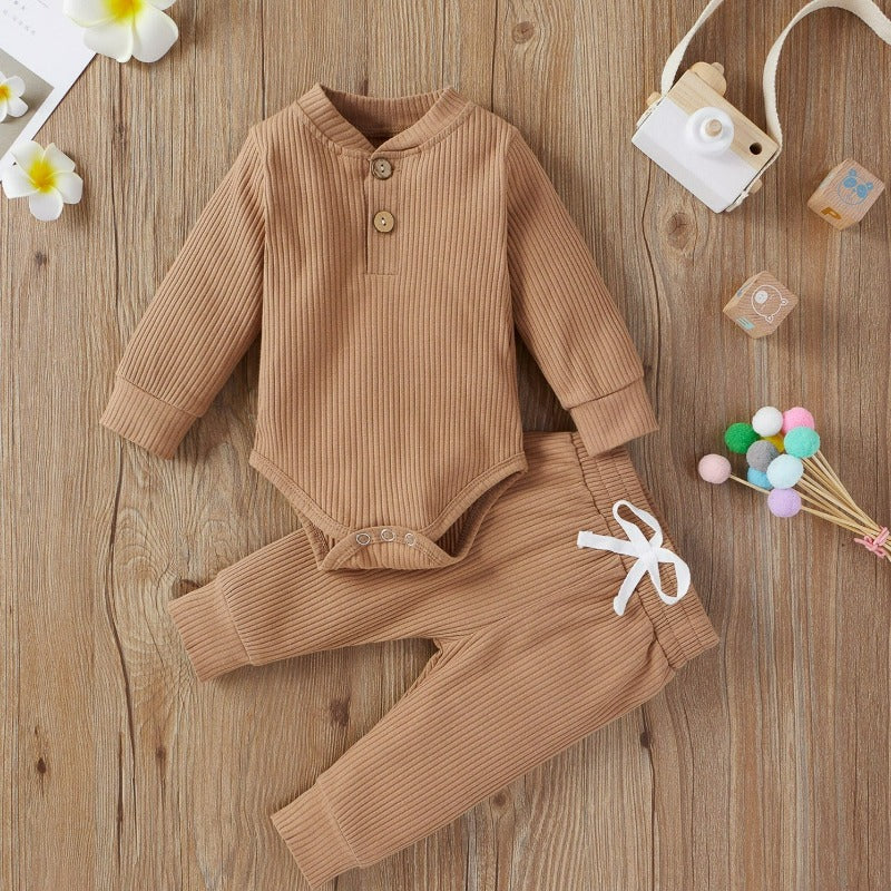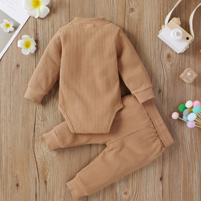 2-Pc Long Sleeve Ribbed Bodysuit + Pant Set