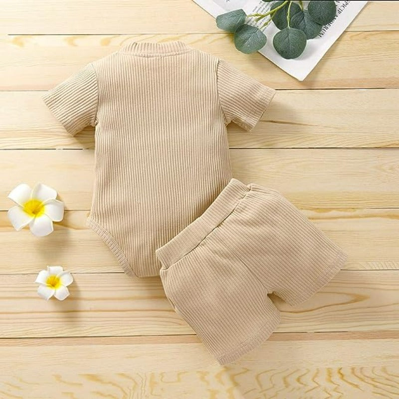 2-Pc Short Sleeve Ribbed Bodysuit + Short Set