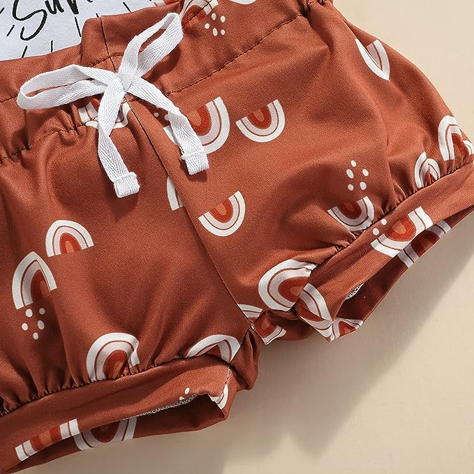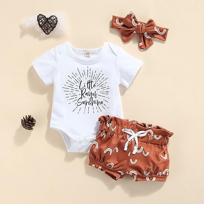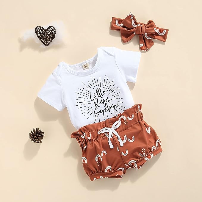 This 3-Piece Short Sleeve Bodysuit Outfit offers perfect summer comfort for your little one. The set includes a bodysuit, shorts and matching bow tie headband, making it easy to achieve a coordinated look. The soft and breathable fabric keeps your baby cozy and comfortable while the sun is shining.