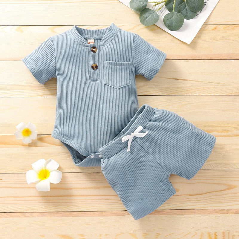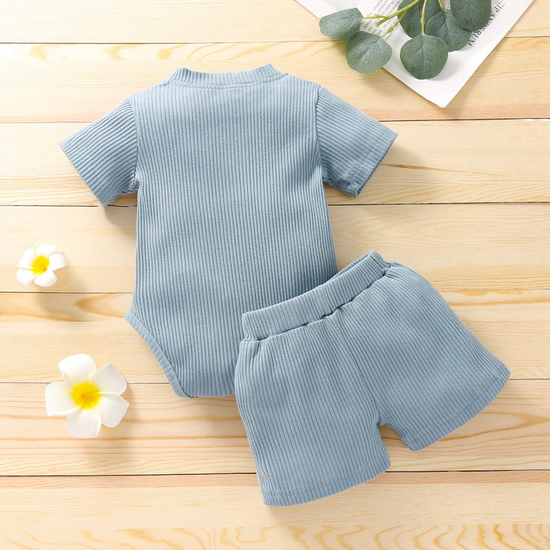 2-Pc Short Sleeve Ribbed Bodysuit + Short Set