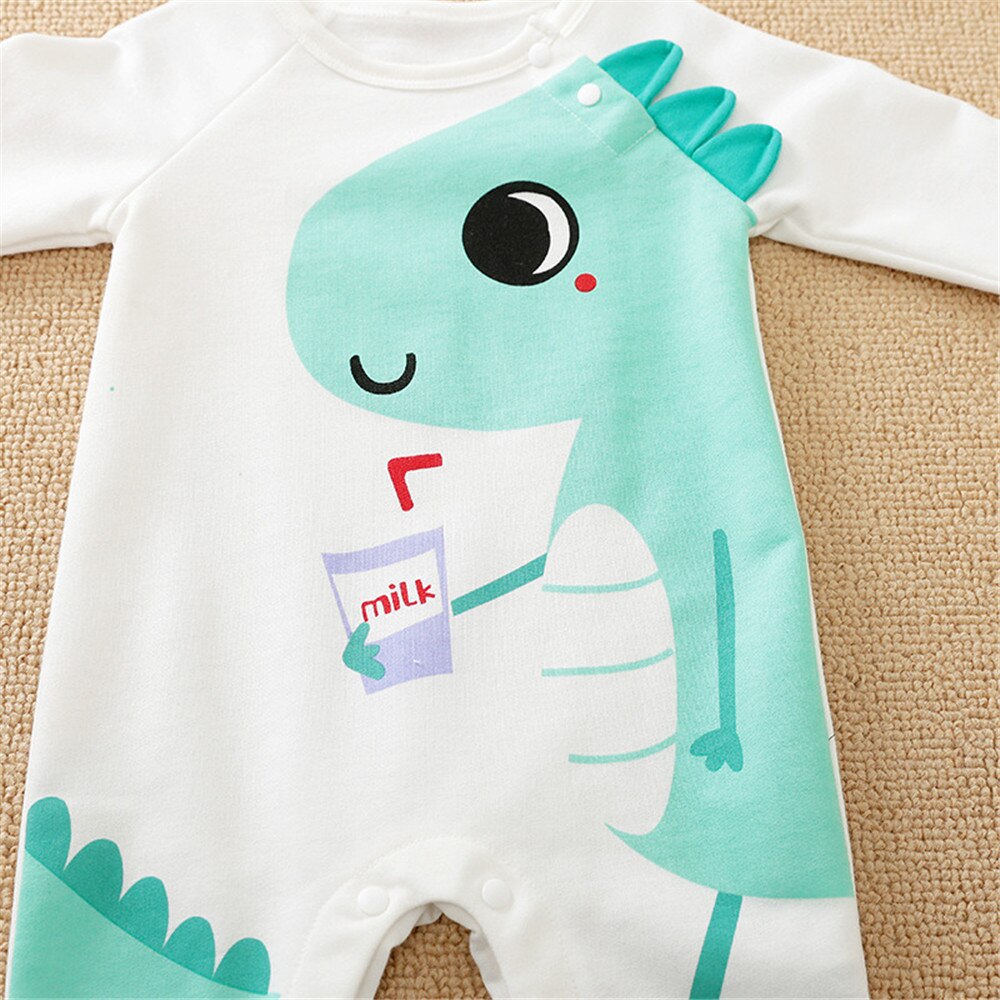 Colourful, and fun unisex long sleeve romper with cute milk dinosaur print. Featuring long sleeves and open foot makes it perfect for all little ones who love their milk!