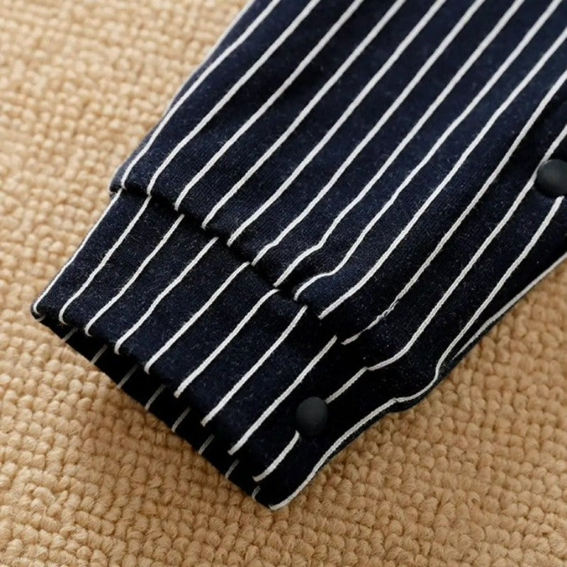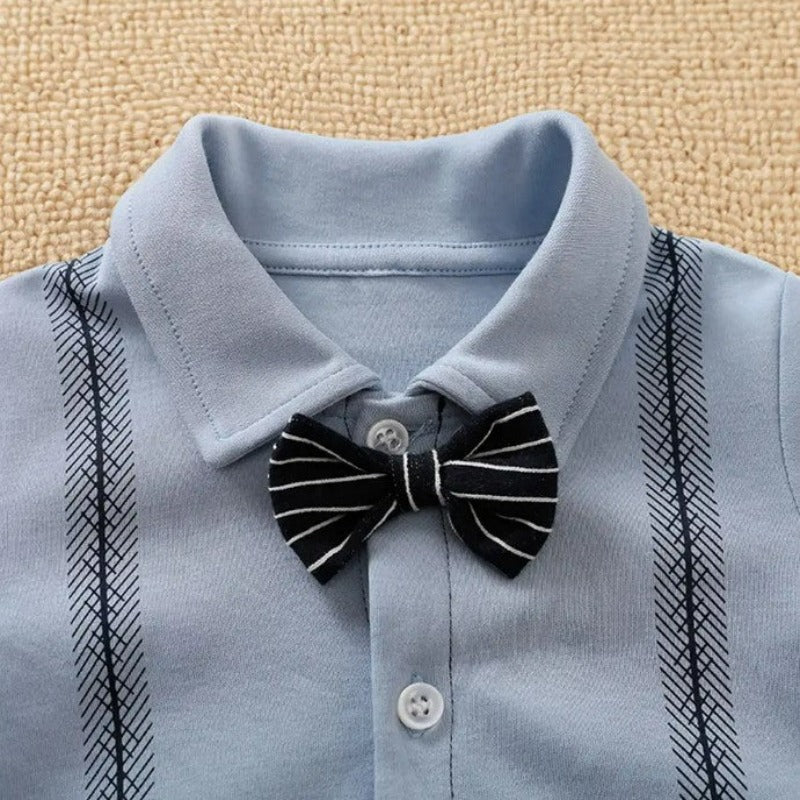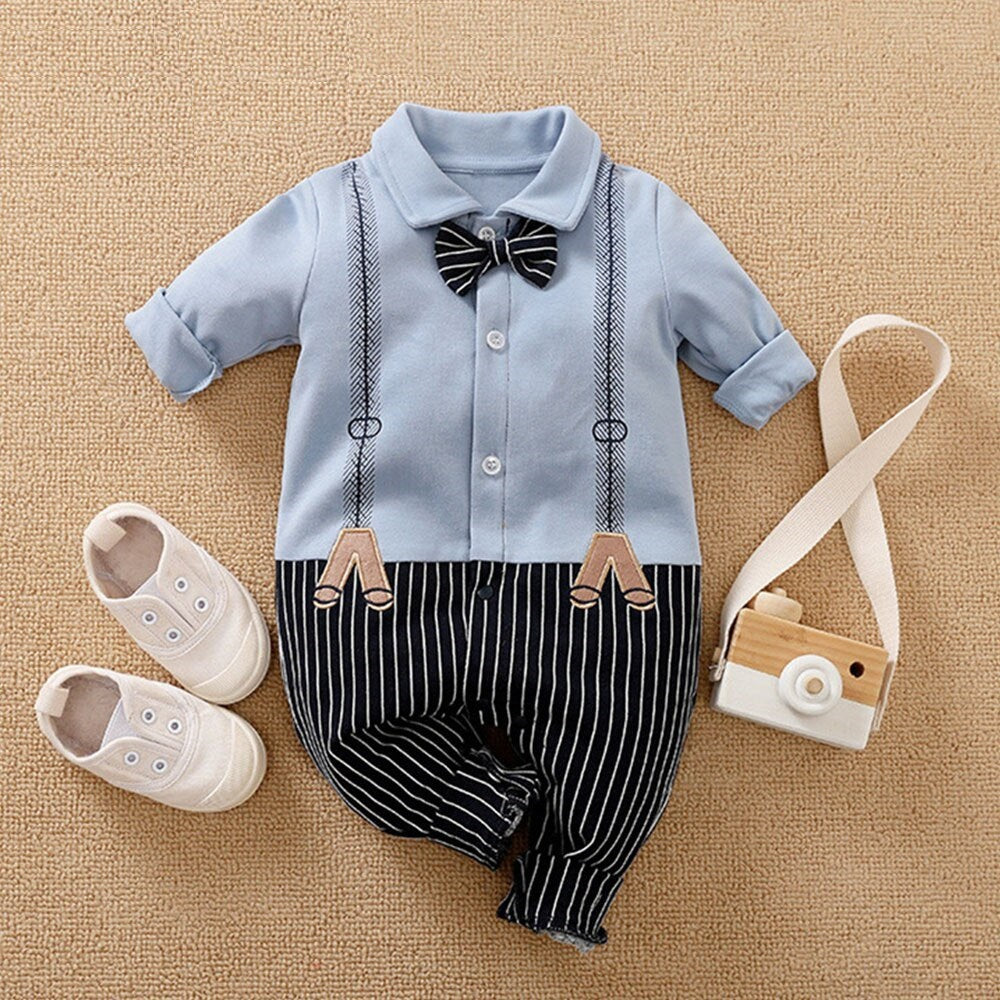 This Long Sleeve Romper is made of cotton and designed for extra comfort. It features a cute bow tie and stripe pants that is perfect for any occasion. Its stylish appeal and comfort make it the perfect addition to your little one's wardrobe.