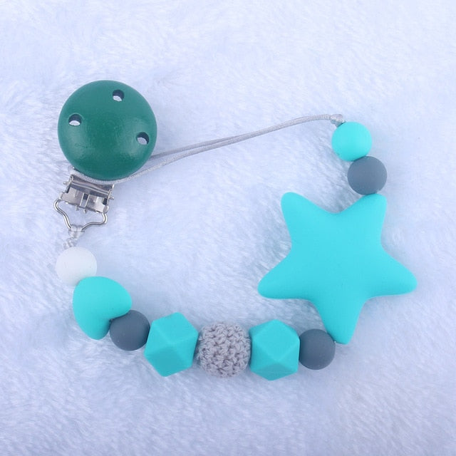 Made from premium materials, these dummy clips are super easy to clean. They look simple and neat, whilst keeping the dummy in place. The chain is clamped in the corner of the baby's clothes to prevent losing the dummy.