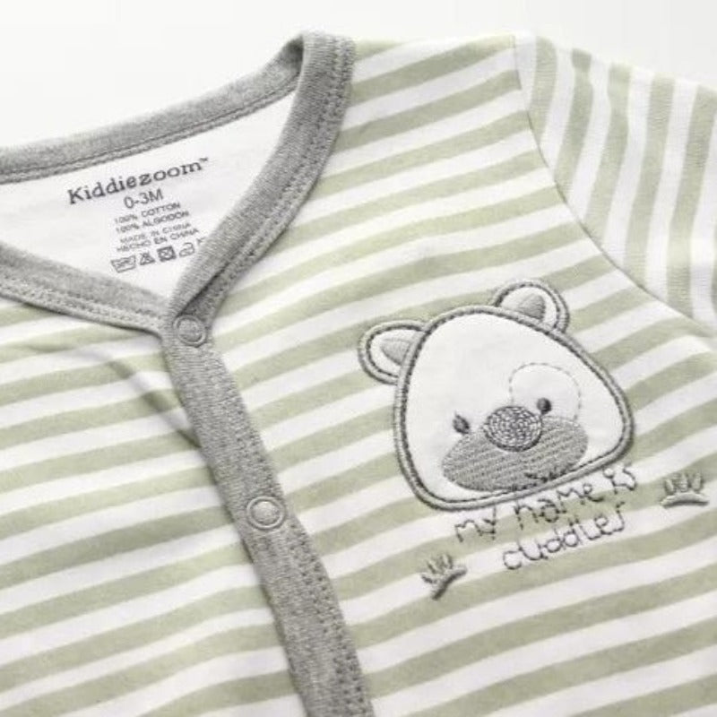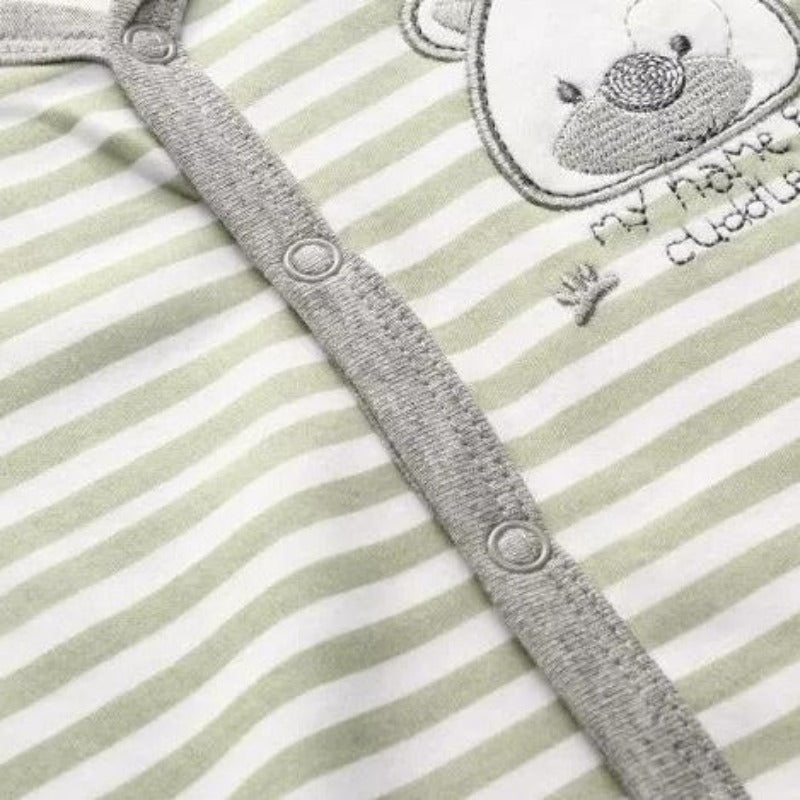 This cute little baby closed foot sleepsuit is made from 100% cotton. Straight-line button snaps from neckline to feet for easy to dress on/off and nappy diaper changes. Closed foot design keeps your little bundle of joy's feet warm and cosy all day and night.