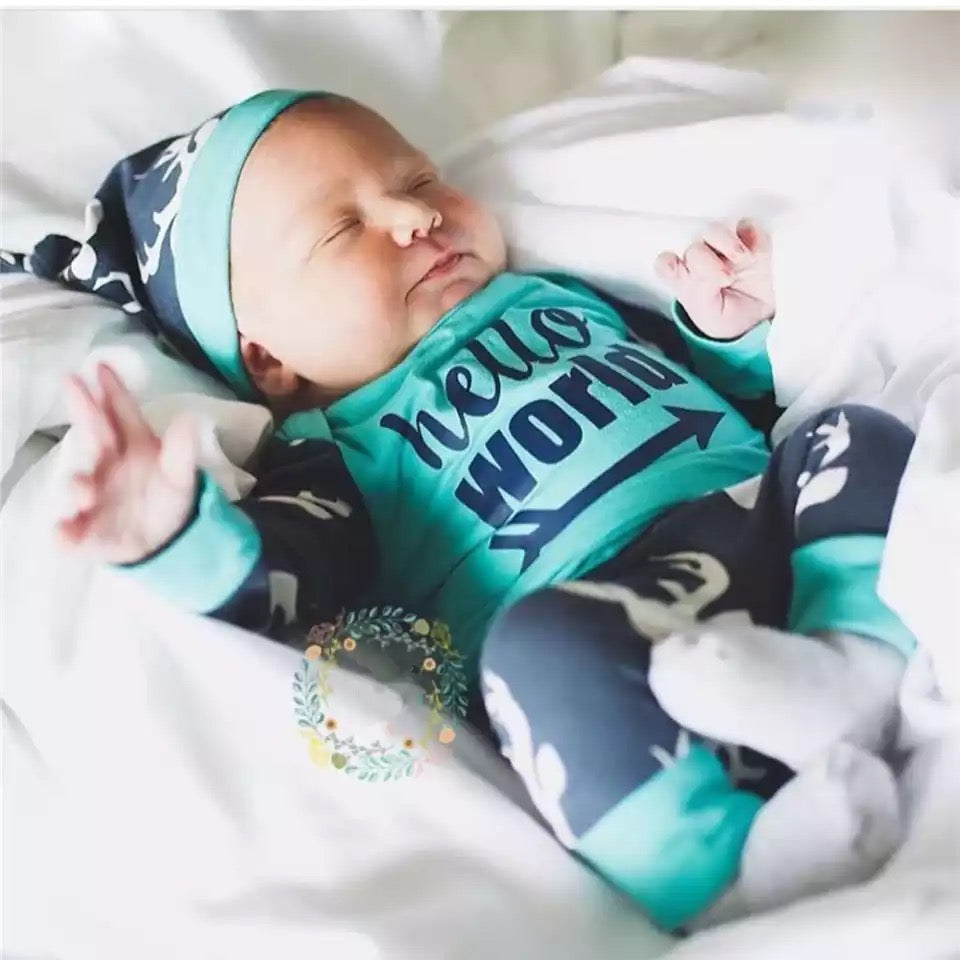 Included: 1 Long Sleeve Top, 1 Pair Pants, 1 Cap