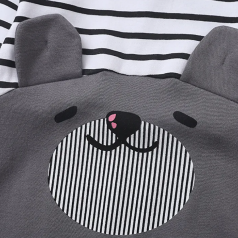 This stylish long sleeve romper is sure to be a hit with your little one! The quirky bear print and 3D pop out ears together with the stripe print will make your kid look oh-so-cute. Made from quality materials, this outfit is comfortable and durable to last all season.