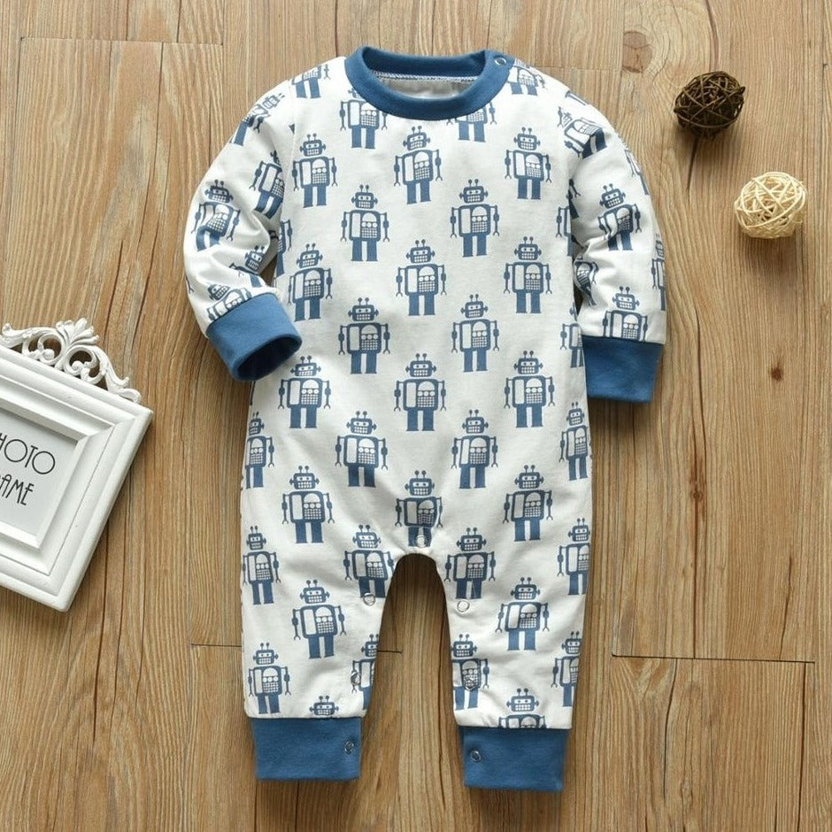 Suit up your little one in style with our Long Sleeve Romper! This adorable baby romper is the perfect combination of cute and cool with its playful robot design and vibrant blue color. The long sleeve feature ensures your baby stays warm and cozy, making it the ideal outfit for any occasion.