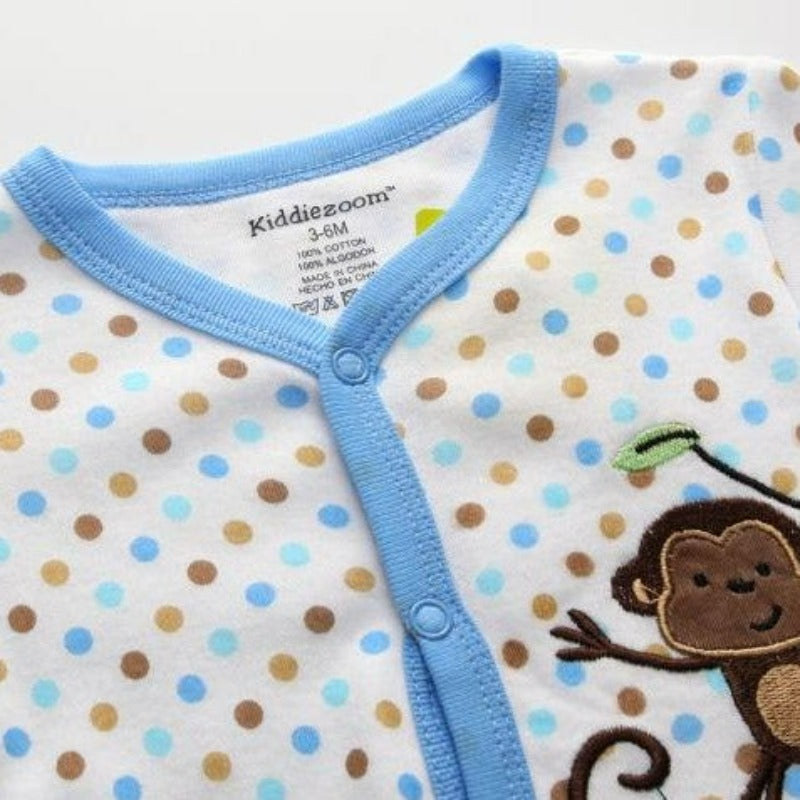 This cute little baby closed foot sleepsuit is made from 100% cotton. Straight-line button snaps from neckline to feet for easy to dress on/off and nappy diaper changes. Closed foot design keeps your little bundle of joy's feet warm and cosy all day and night.